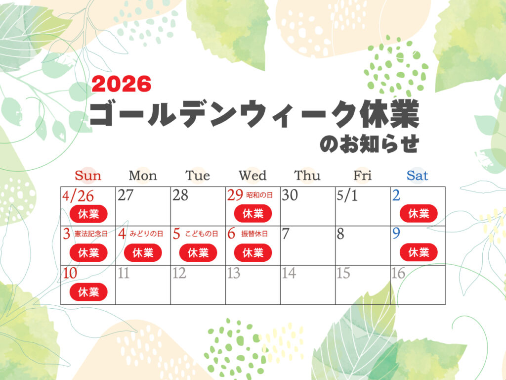 誠に勝手ながら上記期間をゴールデンウィーク休業とさせて頂きます。